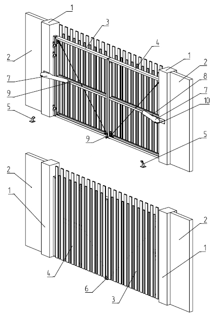 - • Комплектация для распашных ворот (засов, упор центральный, упоры боковые, комплект петель, столбы для крепления стальные, ручка для ручного открывания)