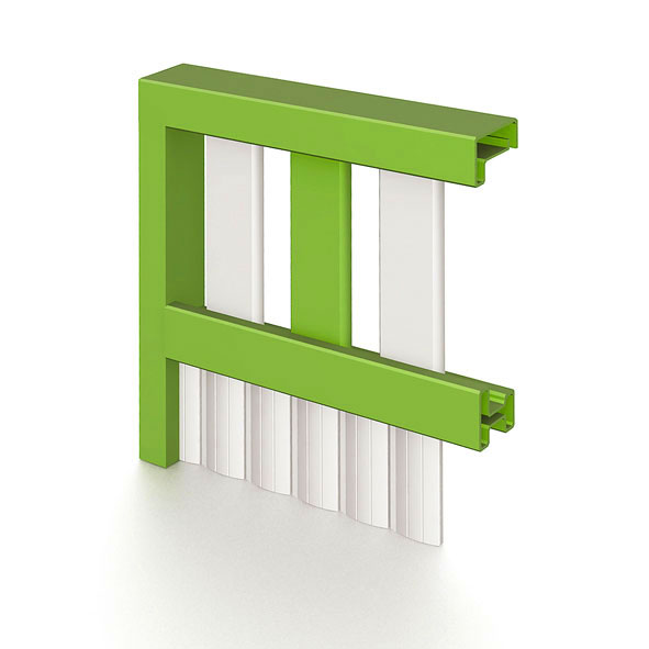 - • Все основные элементы конструкции изготавливаются из алюминиевого профиля, окрашенного с помощью полимерного покрытия, что надежно защищает полотно ворот от неблагоприятного воздействия атмосферы, исключает коррозию и увеличивает срок эксплуатации изделий.