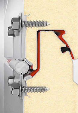 - Конфигурация панелей обеспечивает их самоцентровку. Это гарантирует плотное примыкание панелей друг к другу, повышает герметичность и теплоизоляцию ворот. Существенно упрощается монтаж и исключаются ошибки при сборке полотна.