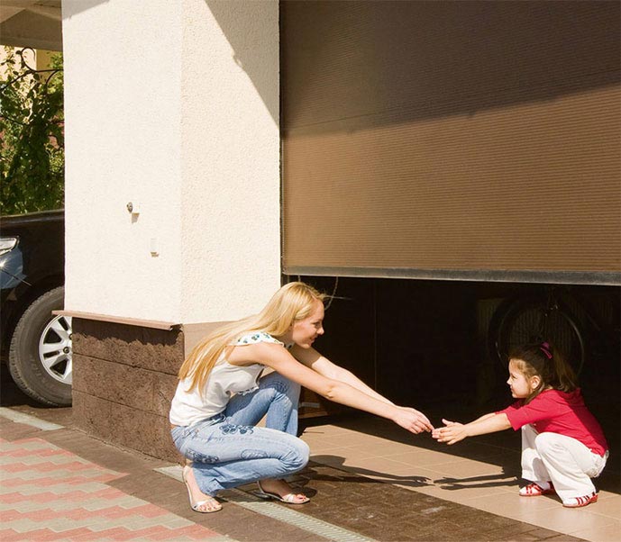 - • Отсутствие острых кромок на конструктивных элементах и размещение тягового троса между угловой стойкой и полотном ворот обеспечивает надежную защиту от зацепов и порезов.