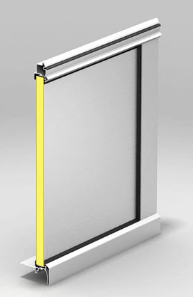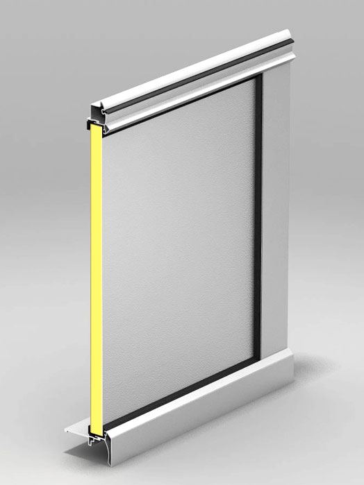 Панорамные секции также состоять из композитных панелей толщиной 22 мм с тиснением Stucco. Панели изготавливаются из двух листов алюминия, пространство между ними заполнено полистиролом.